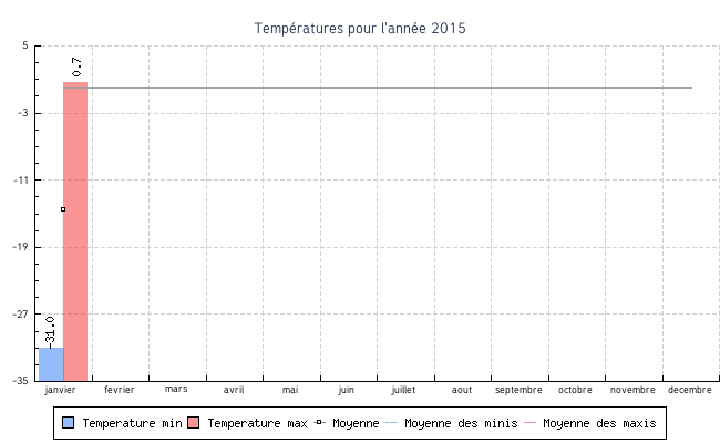 | janvier | -31.0 °C | -22.9 °C | 0.7 °C | -8.0 °C | -14.5 °C | 0.5 km/h | 37.0 km/h | NE |